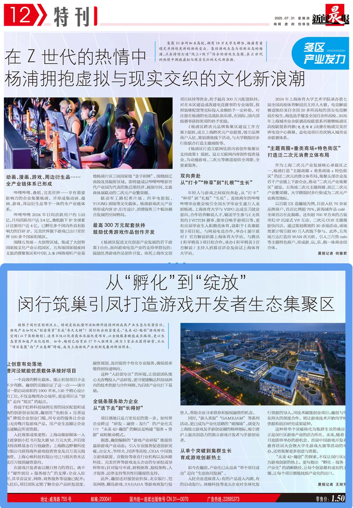 植根于闵行区创新沃土,特别是依托漕河泾虹桥科技绿洲的成熟产业生态与优势区位,游戏产业如何从“创意萌芽”长成“参天大树”?