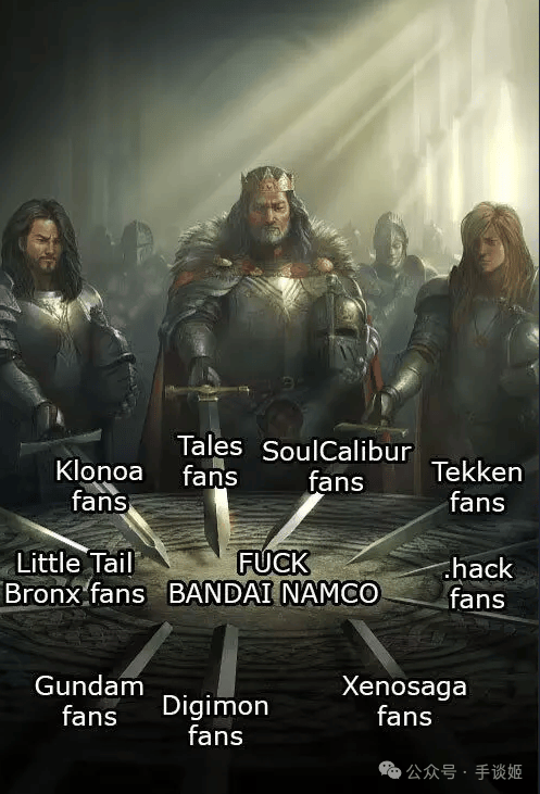 克罗诺亚、传说系列、剑魂、铁拳、.hack、异度传说、数码兽、高达、猫犬协奏曲。很显然,受害者不止这么些个系列,这图还是太小了……
