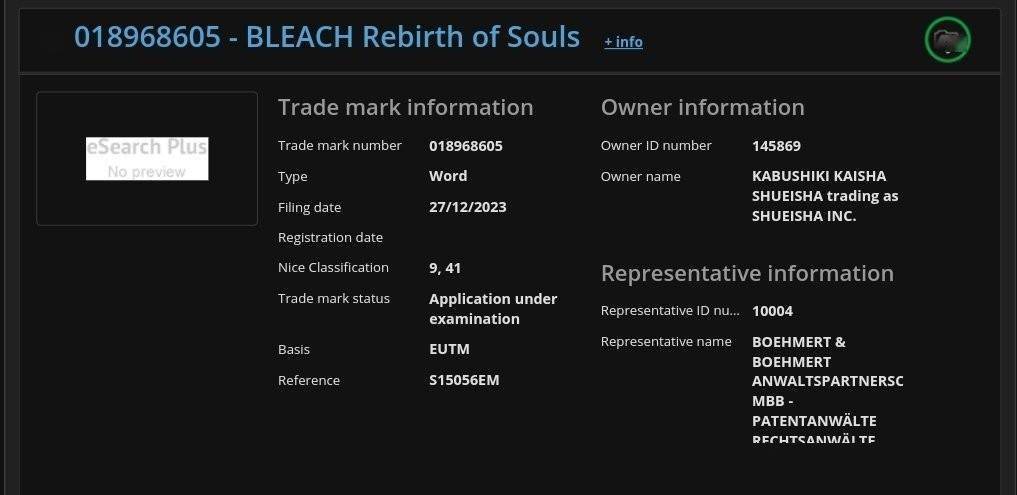 目前关于《BLEACH Mirrors High》的具体内容尚无官方说明,项目是否已经进入开发阶段亦不得而知。根据EUIPO相关规定,从提交到正式核准通常需时数月,商标本身也可能在开发过程中变更、延后或取消。