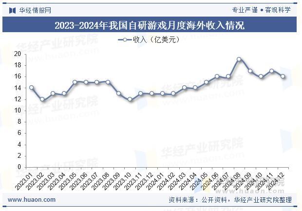 2023-2024年我国自研游戏月度海外收入情况